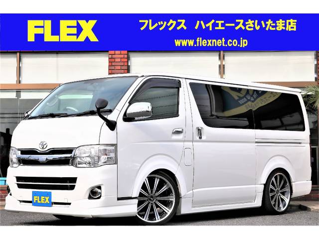 【フルエアロ】平成24年ハイエースVスーパーGL2WDガソリン、ワンオーナー車!SDナビ・フルセグ・17AW・ローダウン・ベッド!