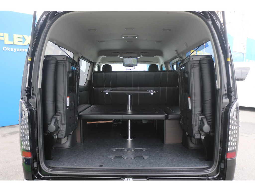 【新型ワゴンGL/FLEXオリジナル内装架装アレンジAS】対面対座&フルフラット可能♪大画面ツインモニター搭載♪全国陸送可能♪(ブラックマイカ・3BA-TRH214W)
