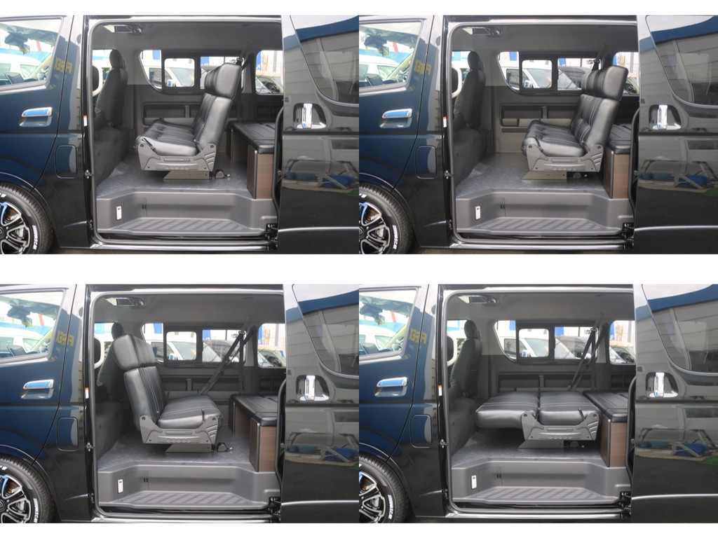 【新型ワゴンGL/FLEXオリジナル内装架装アレンジAS】対面対座&フルフラット可能♪パノラミックビューモニター搭載♪全国陸送可能♪(ブラックマイカ・3BA-TRH214W)