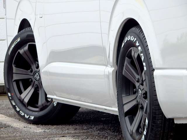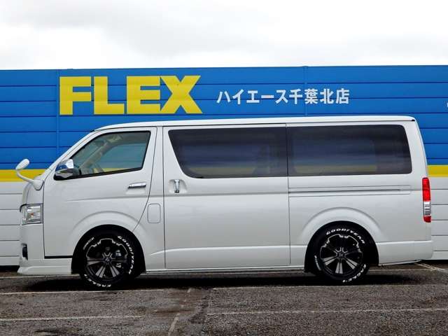 【即納】新車ハイエースバンスーパーGLローダウンフロントリップオリジナルボンネットDelfinoLineバルベロ17AWナスカータイヤバック(9999)