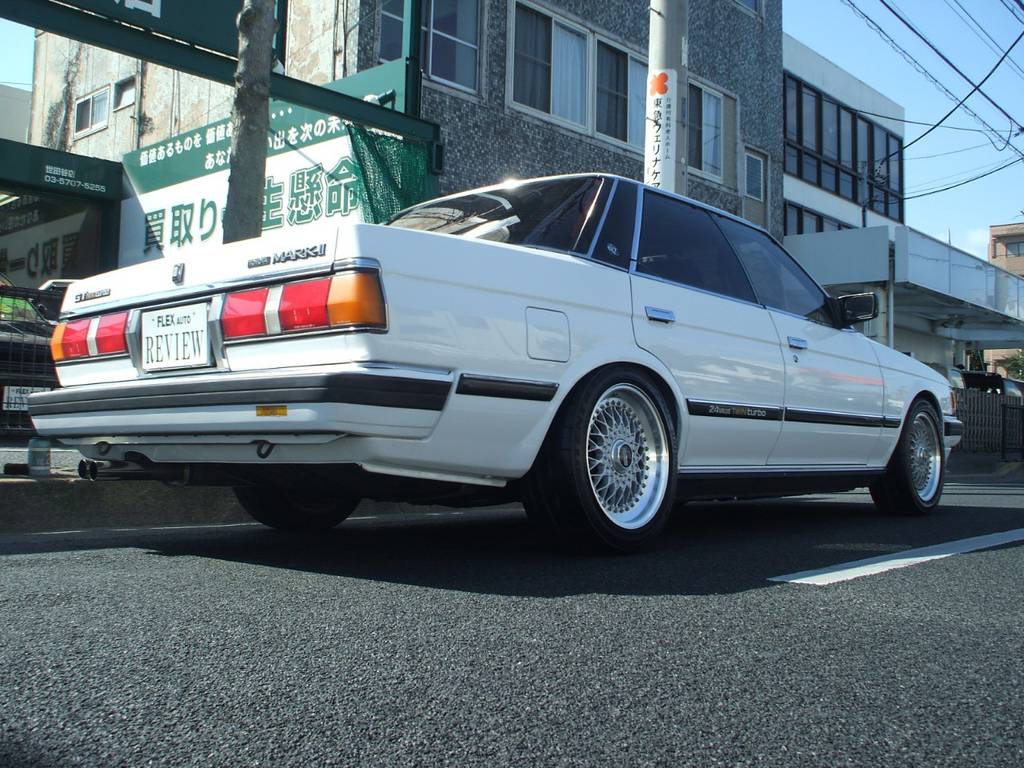 今回のマークⅡツインターボはかなりクオリティの高いものと思ってください。生産台数が多かったGX71系の車でも意外にしっかりとした極上車ってそんなに残っていないんですよね。残っているとしたら後期型の方が割合的には多くて...そんな中、入庫したのが前期のGTツインターボのまぎれもない極上車です。実走行は62千kmで実質の1オーナー車で、とにかく良いトコロにしっかりお金がかかっている!ここまで仕上げるのにその費用はやく170万円というほぼレストアして蘇ったマークⅡなのです。数年前にオールペンや機関系メンテナンスをがっつりと行っています。レストアやカスタムに強い某プロショップに手がけられているので、見れば納得のキマりもの。外装のスーパーホワイトはもちろんツヤツヤでモール類のヘタリもほとんど無く、ものすごくシャキッとしています!前期の特徴といえば猫目テール、これが超絶クールなんですよね。メッキモールも全体的にしっかりしていて良い輝きを放っていますよ。外装だけでなくもちろん内装の状態もグッド!お約束のダッシュボード割れや前期特有のパネルスイッチの腐食もありません!シートもほとんど日焼け無し、フロアマットもキレイに残っているしとても好印象な室内ですね!ステアリングはMOMOが付いていますが、純正ステアリングもありますよ♪機関は文句無しに絶好調!エンジンはヘッドを開けてカムシャフトとクランクのシールを交換、タイベルと一緒にテンショナー、プーリー、サーモ、ウォーターポンプ、他ベルト類、あとオルタネーターも交換されています。抜かりないです!今後乗り続けていくうえでいつかは手をつけなくてはならない箇所なので、こういったところは非常にお得!!足回りはブレーキ類OH、ローター研磨、前後ショップオリジナル車高調(ネジ式)とリフレッシュされています!マフラーはショップオリジナルの静かめなワンオフステンレス!下回り、タイヤハウスもキレイです♪ホイールはBBSの16インチにタイヤはポテンザという豪華な組み合わせ。ATの前期ツインターボで、このくらいの車高にBBSが16インチのチョイスというのがシブくてたまらない。目の肥えた人にはググっとくる仕様!どこにでも気軽にお出かけできるし、カッコイイしシブく目立てるし良いことばかりです。私も欲しいですこのマークⅡは♪本気でお考えでしたらお問合せはお早めに!!