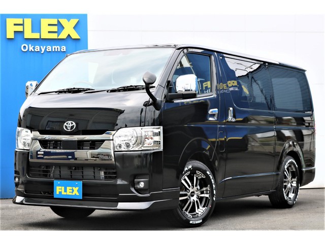 新車ハイエースVダークプライムⅡ2000ガソリ両側パワースライドドア装着済みのライトカスタムパッケージ!FLEXオリジナルパーツ多数装備!!