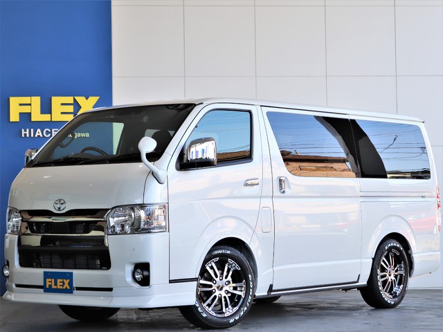 【新車】ハイエースVダークプライムⅡガソリン2WD床張りベットKITパッケージ完成!FLEXオリジナルパーツでカスタマイズ済みの1台!!