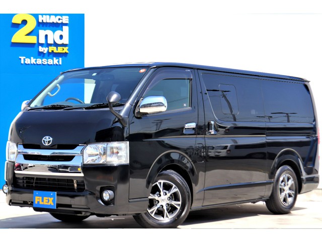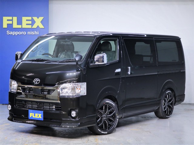 新型ハイエースVダークプライムⅡ 2000 床張り施工済み 小窓付きスライドドア フルセグナビ/HDMI