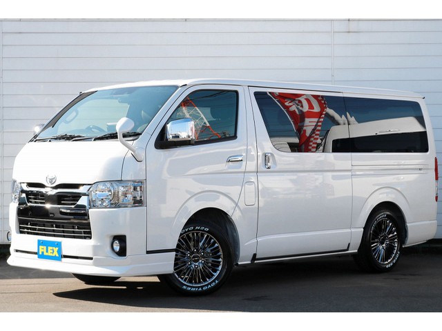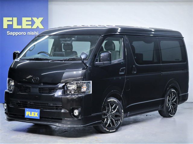 【下取り直販フローリング施工車!調布店発!】29年ハイエースVダークプライム3000ディーゼルターボ4WD新品FLEX16インチアルミ