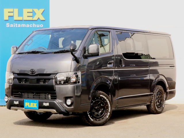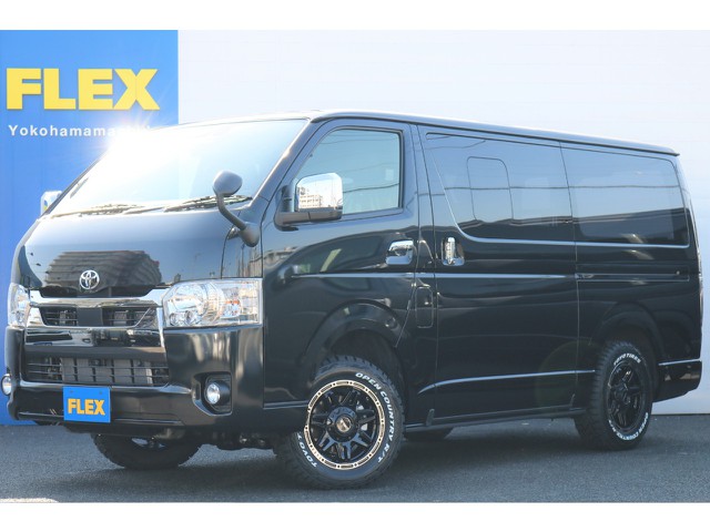 新車 ハイエースDXGLパッケージ 乗りだしやすいガソリン2WD ブラックマイカと艶消し黒でFLEXカスタム♪ もちろん即納車可能です☆