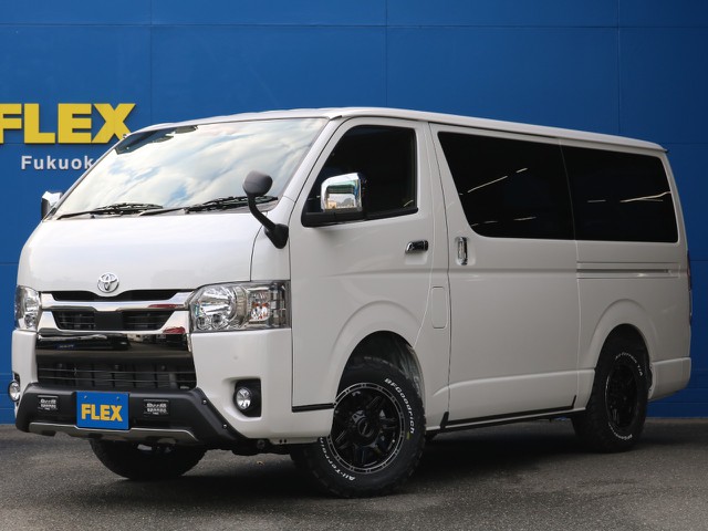 【マッドブラックカスタム】新車ハイエースVダークプライムⅡガソリン車COBRAボンネットFLEXバルベロ17アルミヘッド