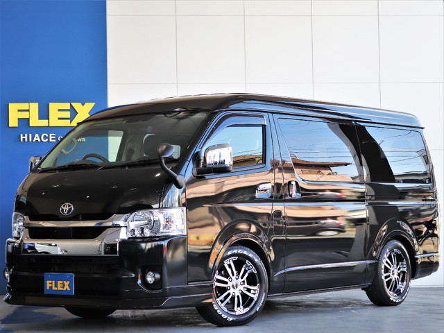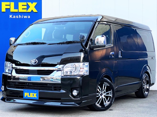 【新車】ハイエースVダークプライムⅡガソリン2WD床張りベットKITパッケージ完成!FLEXオリジナルパーツでカスタマイズ済みの1台!!