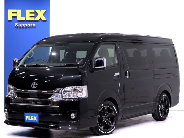 新型ハイエースVダークプライムⅡ 2000 床張り施工済み 小窓付きスライドドア フルセグナビ/HDMI