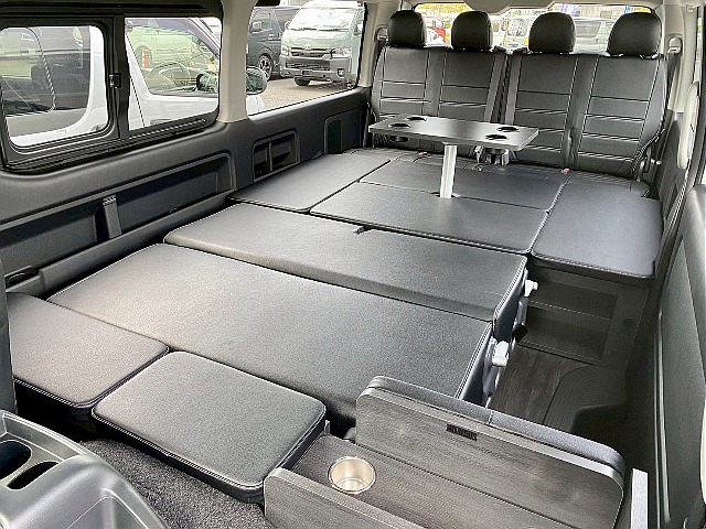 【9型】新車/10人乗り/ガソリン2WD/17インチAW/フルフラットベッド展開/脱着式テーブル/床張り施工