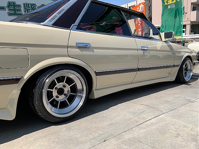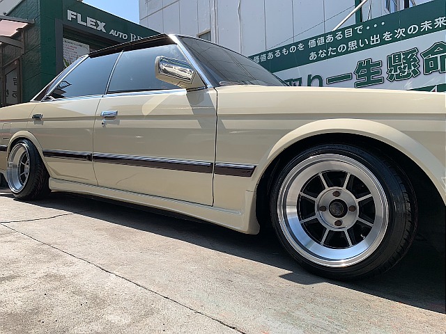 かなり久しぶりのマークⅡです!!唯一無二のカワイイシブいスタイルにしました♪ハヤシ15インチ、前後車高調にワンオフマフラー付きです!