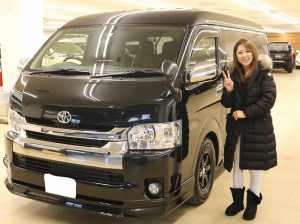 ハイエースが欲しいと思って見に来たら、すべての装備が揃っている車を見せてもらい、主人や子供たちがとても気に入ったので購入させていただきました。あと、加賀谷さんの説明もとてもわかりやすくてよかったです。納車を急いであげていただいて嬉しかったです。