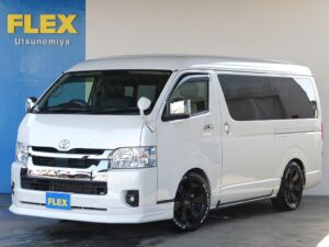 栃木県初出店となるハイエース専門店です。新車・中古車のハイエースの販売はもちろん、各メーカーの人気パーツ、フレックスオリジナルパーツを使ったカスタムのご相談もお任せください。ハイエースバン、ワゴンのどちらも豊富な在庫を取り揃えて皆さまのご来店をお待ちしておりますので車両購入からカスタムまでハイエースのあらゆるご相談はお任せください。全国FLEX在庫もお取り寄せOKで、全国通販も承ります。