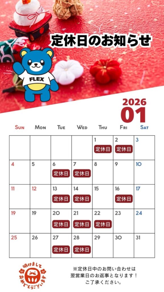 今月の定休日のご案内です!