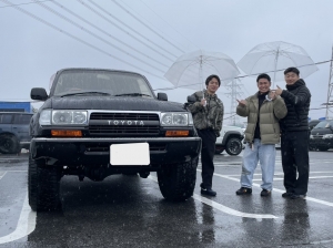 - はじめまして!ランクルJEEP千葉北本店、営業の平田です。生まれも育ちも生粋の博多っ子になります。前職は車の板金塗装の仕事をやっておりましたが、今回新たな試みで、車の営業をやらさせていただいております。未熟な部分も多々ありますが、お客様に喜んでもらえるように日々努力しております。元々はランドクルーザーにはあまり興味は無かったのですが、オフロードに行くようになり、段々と興味が湧きはじめ、現在ではランドクルーザーオーナーです。ちなみに今乗っているランドクルーザーは22万キロ走っている60(ロクマル)になります。車の事は大好きでランドクルーザー以外にもMT換装のアリストや古い型のカローラにも乗っております。そんな車好きの男ですが、お客様にランドクルーザーの魅力を少しでもお伝えし、購入の参考になればと思っておりますので、お店で見かけたらお気軽にお声かけ下さい。オフロードやMTなど、お客様と一緒にやりたい野望などもありますのでお気軽にランクルJEEP千葉北本店にお越し下さい。大きな目玉を開けお待ちしております!