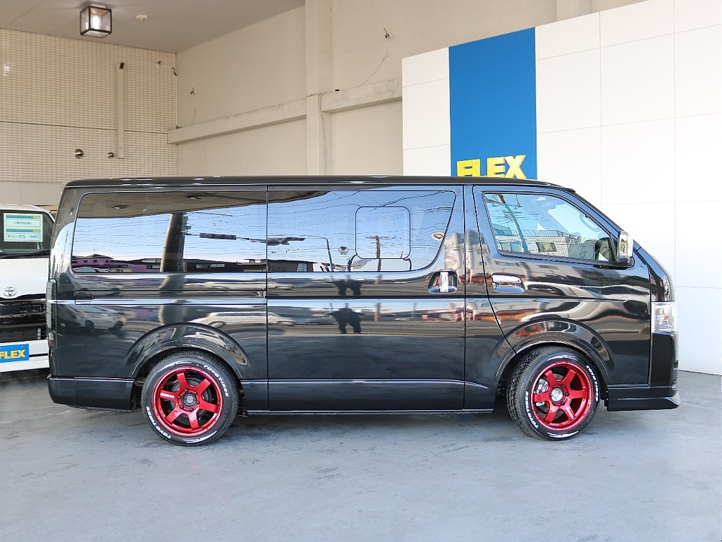 1. 🚩入庫☛【新車】ハイエースバン ガソリン2WD ブラックマイカ 足元が輝くRAYS TE...