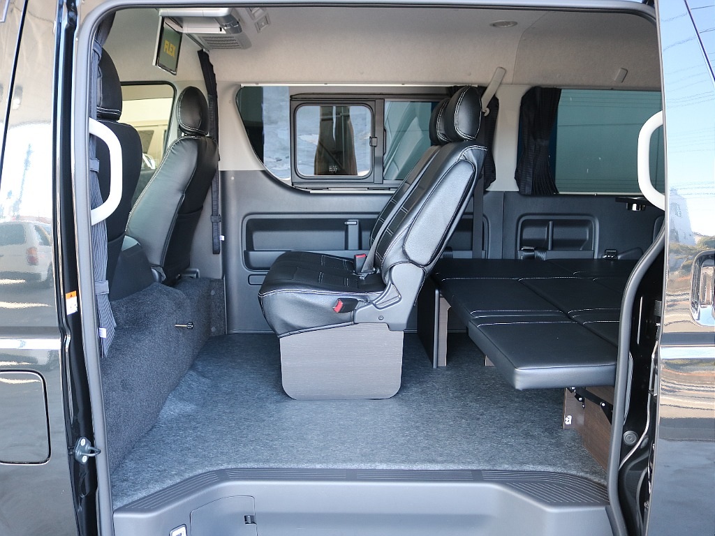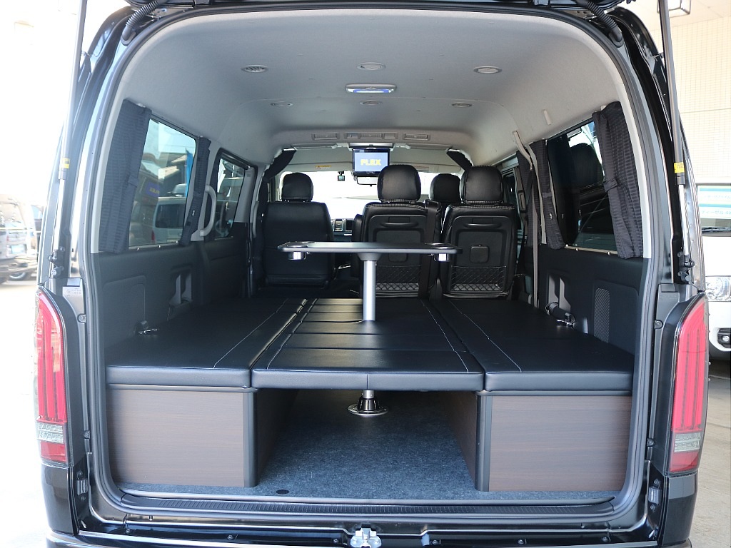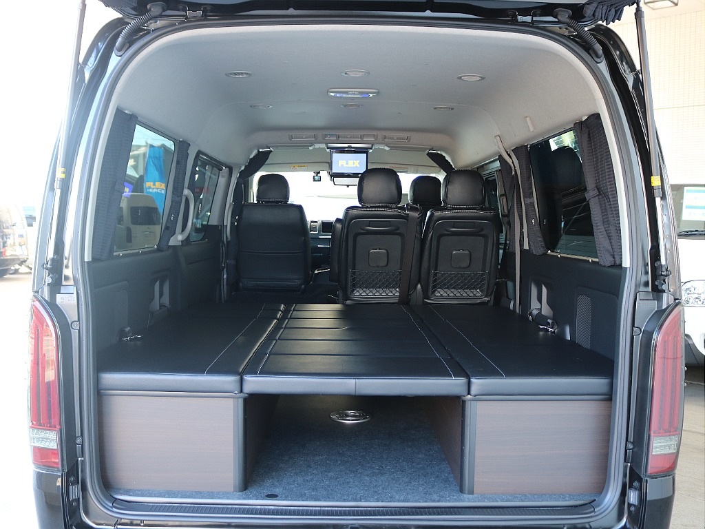 🚩入庫☛【厳選仕入れ中古】ハイエースワゴン ガソリン4WD ブラックマイカ 8ナンバー登録のFLEXオリジナルキャンピングVARIOUS入庫致しました☆☆(XP3231)