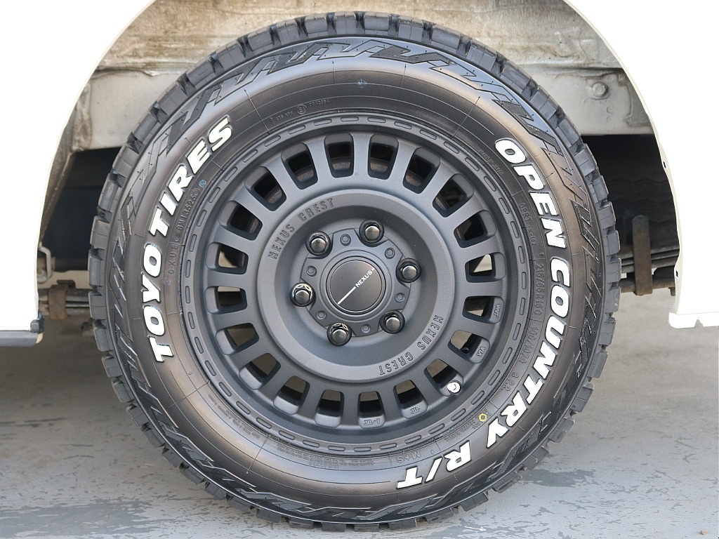 足回りは、オリジナルのNC-1デザートブラック・16インチAWにTOYOオープンカントリータイヤを組み合わせ