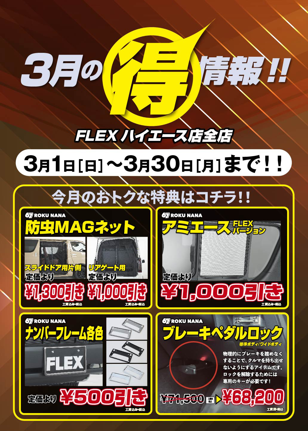 今月は、人気の商品がお安くなっております🙌 こちらもこの機会をお見逃しなく‼️ この機会にぜひ お気に入りの一台を探しに 遊びにきてみてください🤗 ご来店お待ちしております✨ FLEXハイエース札幌西店では、 天候を気にせず見られる屋内展示場で 様々なお車をご用意しておりますので お気軽にお問い合わせお待ちしております! その他、カスタムなども承っております🛠️ 👉 Instagram 👈 入庫情報やフェアなど載せていますのでご覧ください🙌