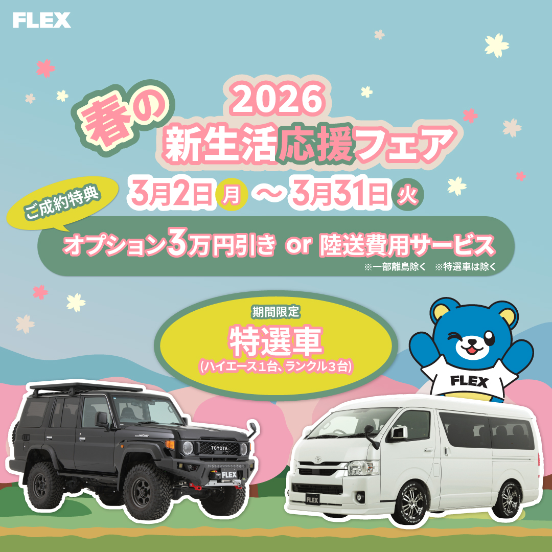 お久しぶりです😀 ハイエース札幌西店です!! 今期の雪は集中的に降り続いて 雪かきが大変だったのではないでしょうか?⛄ それが終わればあっというまに気温が上がり 春が近づいてきている感じがしますね🌸 卒業・入学のシーズンがはじまります! 新生活をスタートする方もいらっしゃるのではないでしょうか😊 今月はそんな新生活を応援する フェアを開催しております❣️🗓️2026/3/2(mon)~2026/3/31(Thu) 春の🌸新生活応援フェア🌸 この期間内にご成約いただくと オプション3万円引き or 陸送費サービス🚛 どちらかお選びいただけます💁♀️ 気になっているオプションも いまならお得に購入できるチャンスです☀️ さらにこちらも‼️