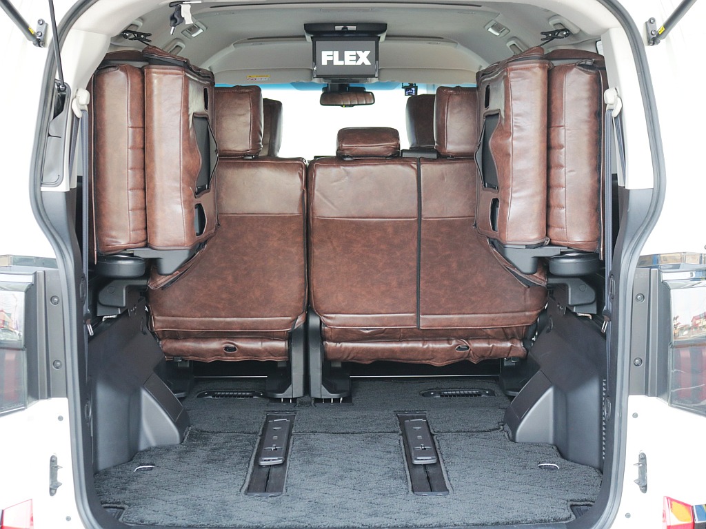 サードシート跳ね上げ可🎶 🛠️カスタム内容🛠️ ●オリジナルLEDテールランプ ●オリジナルリフトアップコイル ●オリジナル16インチアルミホイール ●トーヨーオープンカントリータイヤ ●各所シルバー・メッキ部マットブラック塗装 ●JAOSフロントグリル ●JAOSボンネットリフレクター ●JAOSフロントスキッドバー ●JAOSオーバーフェンダー ●オリジナルシートカバー