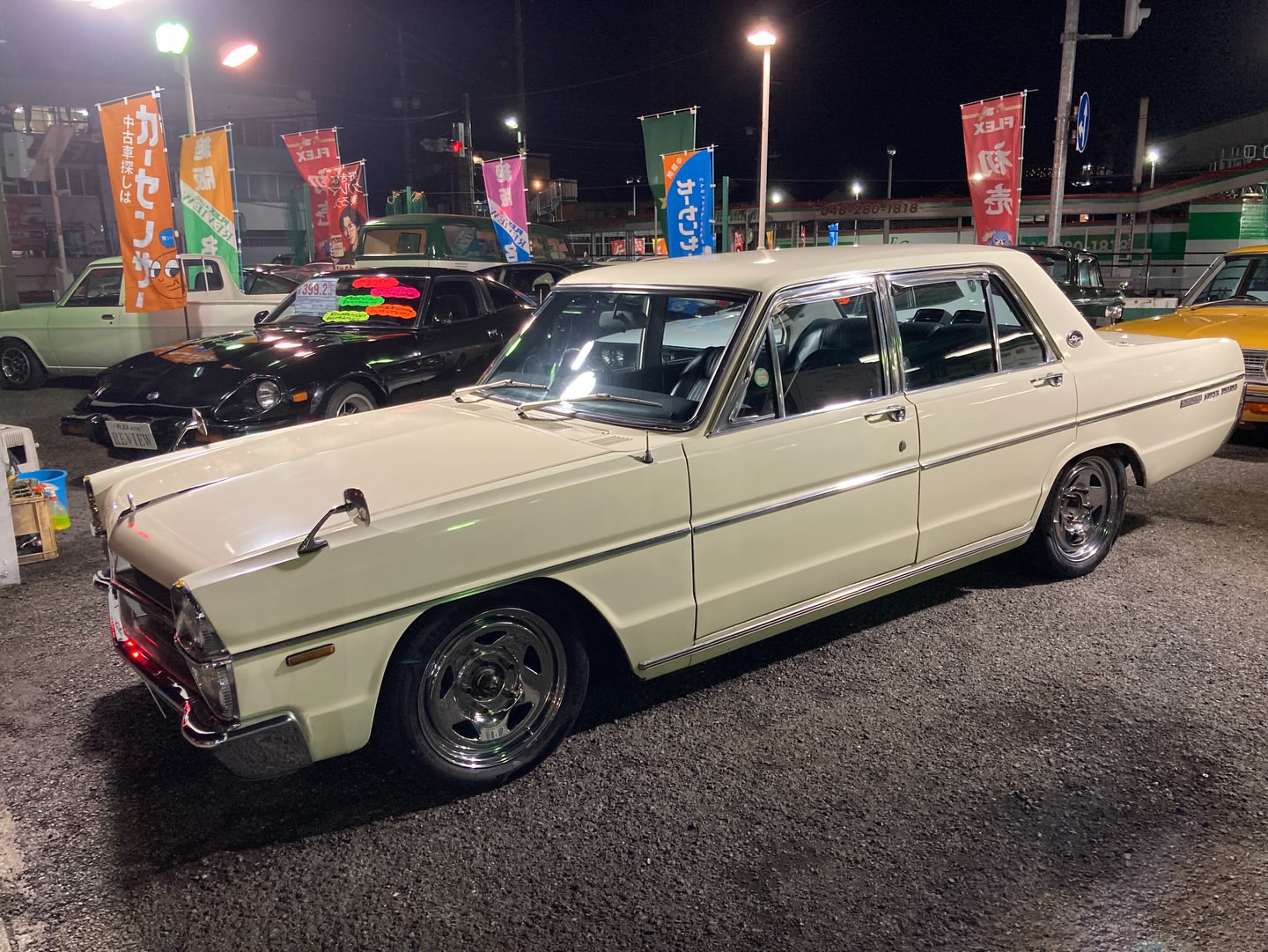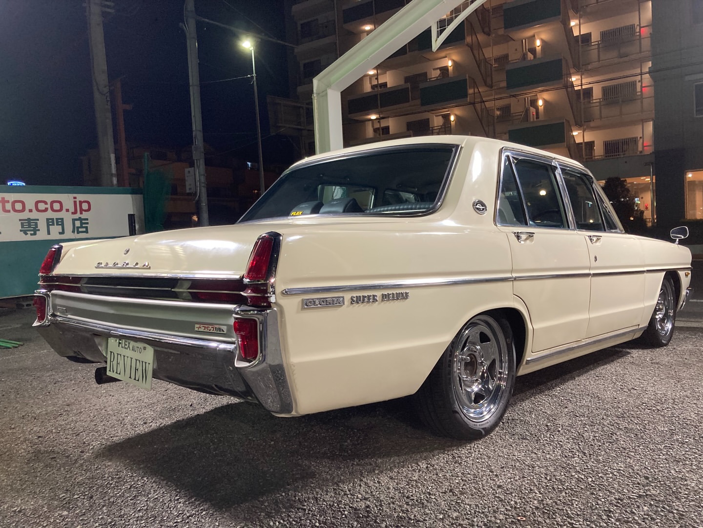 昭和45年グロリアスーパーDX セダン系の大人気車種、タテグロ! 人気の割に近年は出物少なくなってます ローダウンにメッキホイール 相変わらずカッコイイですね