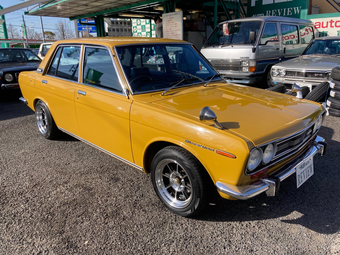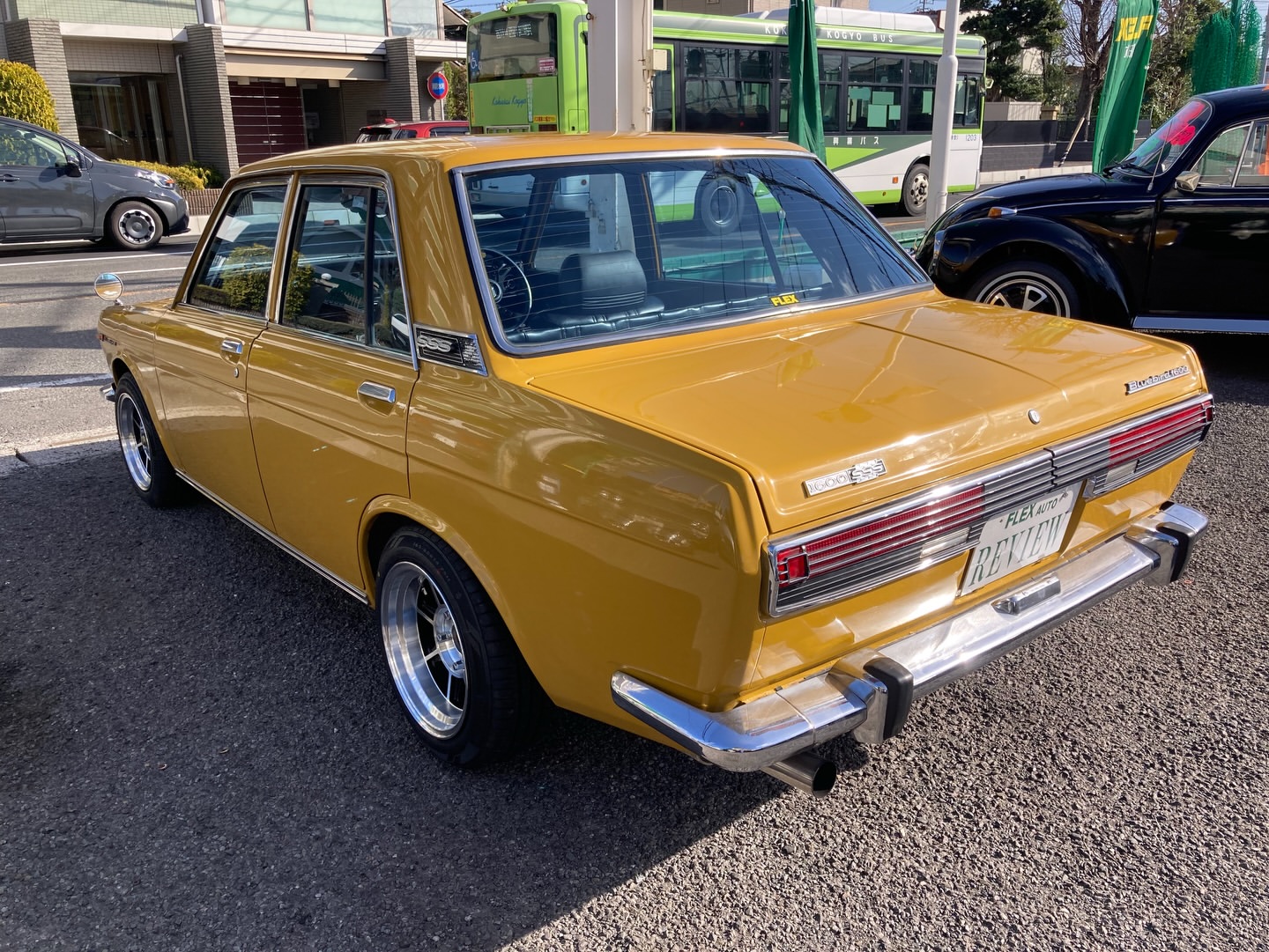 昭和46年 ブルーバード4ドア1600SSS仕様 510はサファリブラウンが似合います! しっかりとしたボディに新品のハヤシが良い感じ