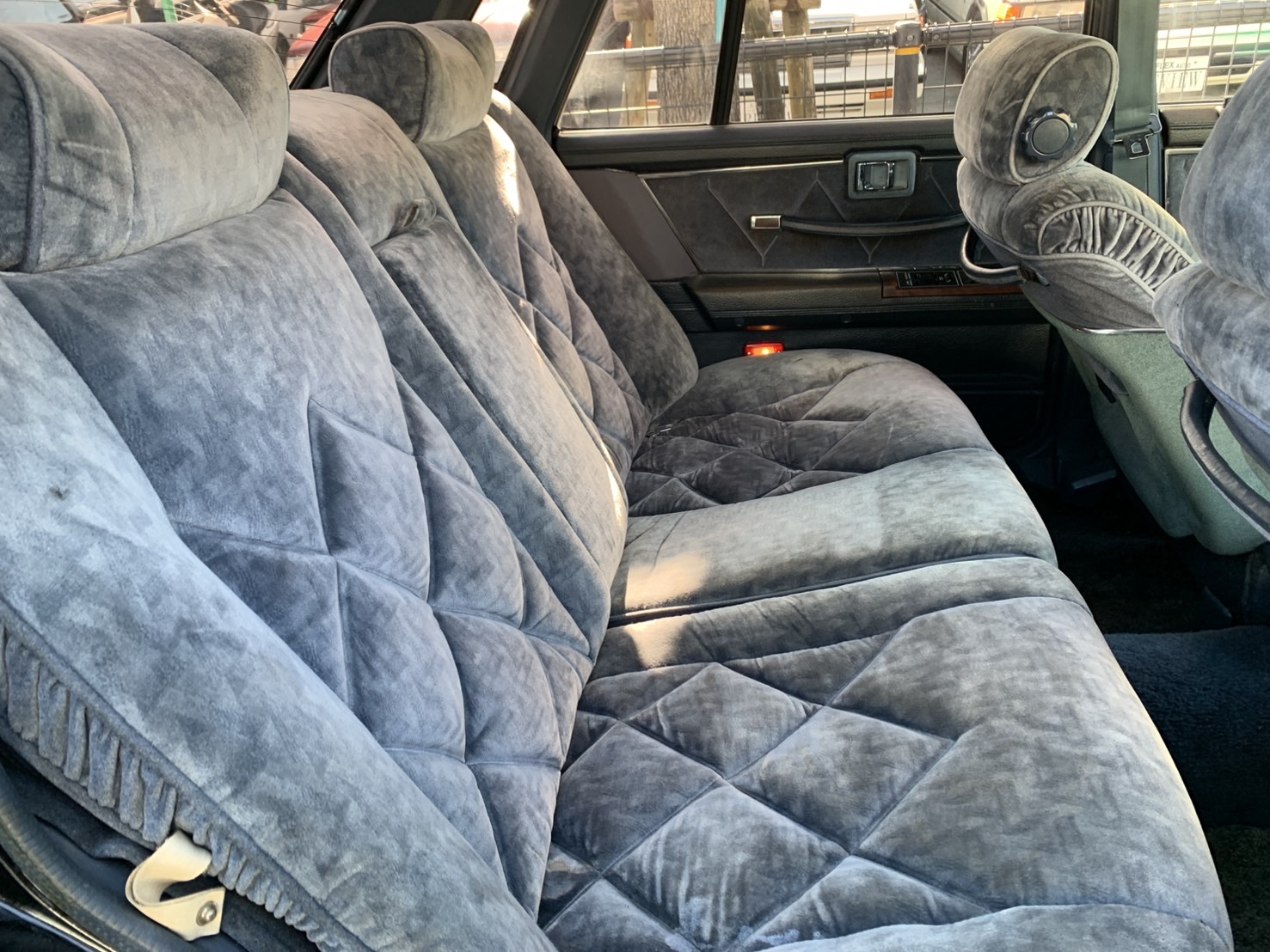 室内は経年劣化残っていますがキレイなほうです。 ブロアム青内装はたまりませんね! このくらいの程度なら私は全然OKですが👍 VIPの特徴としてシートの前後調整は電動のみになっています。