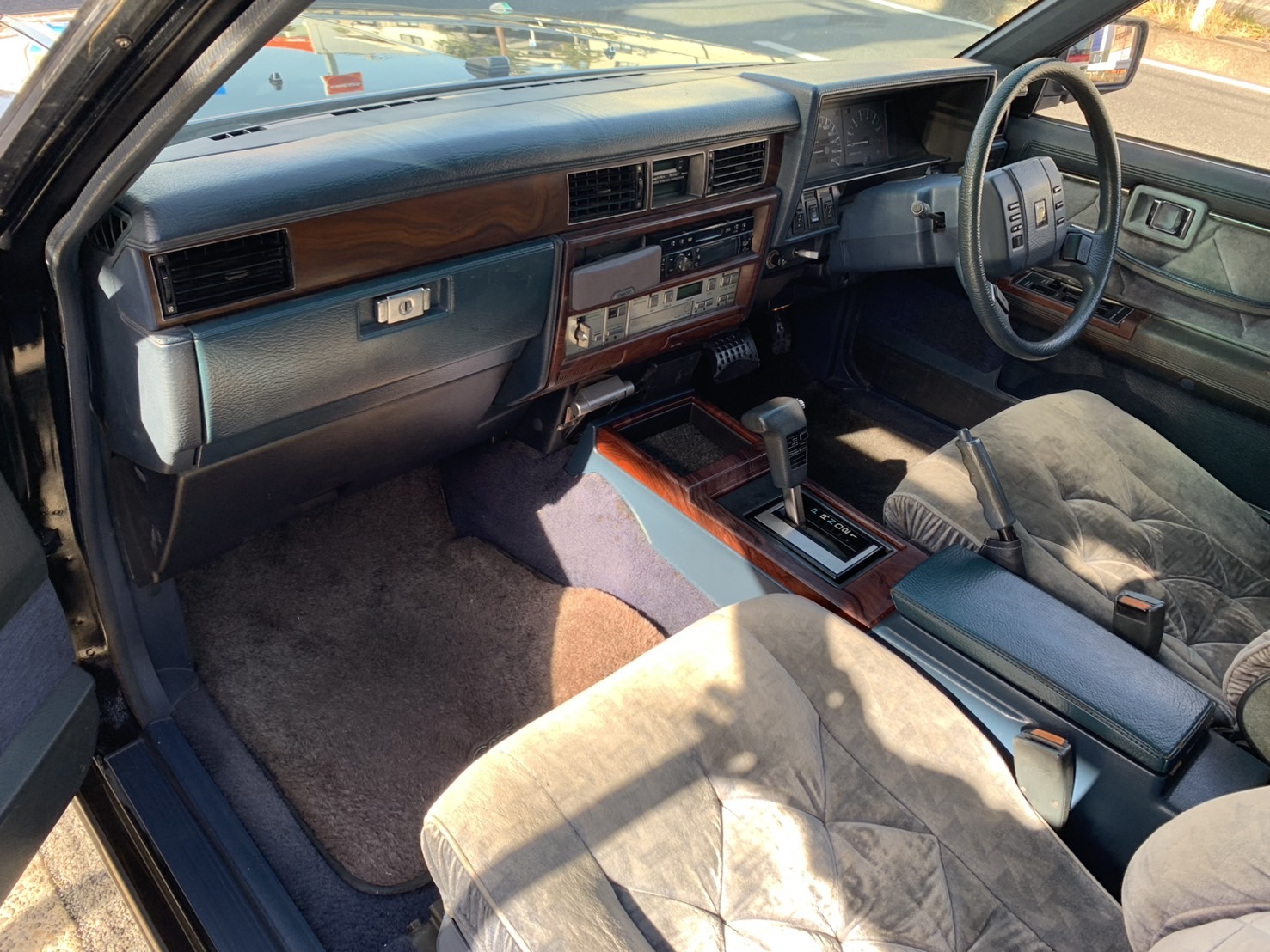 もちろん茶内装もシブいのですが、ファブリック青内装はネオクラ車の宝です😀